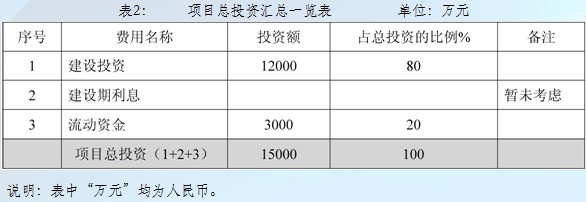 本项目总投资为1.5亿元人民币,其中建设投资12000万元,未考虑债务资金及建设期利息。