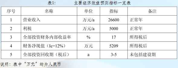 1.3.1 主要经济效益预测指标(详见表1)