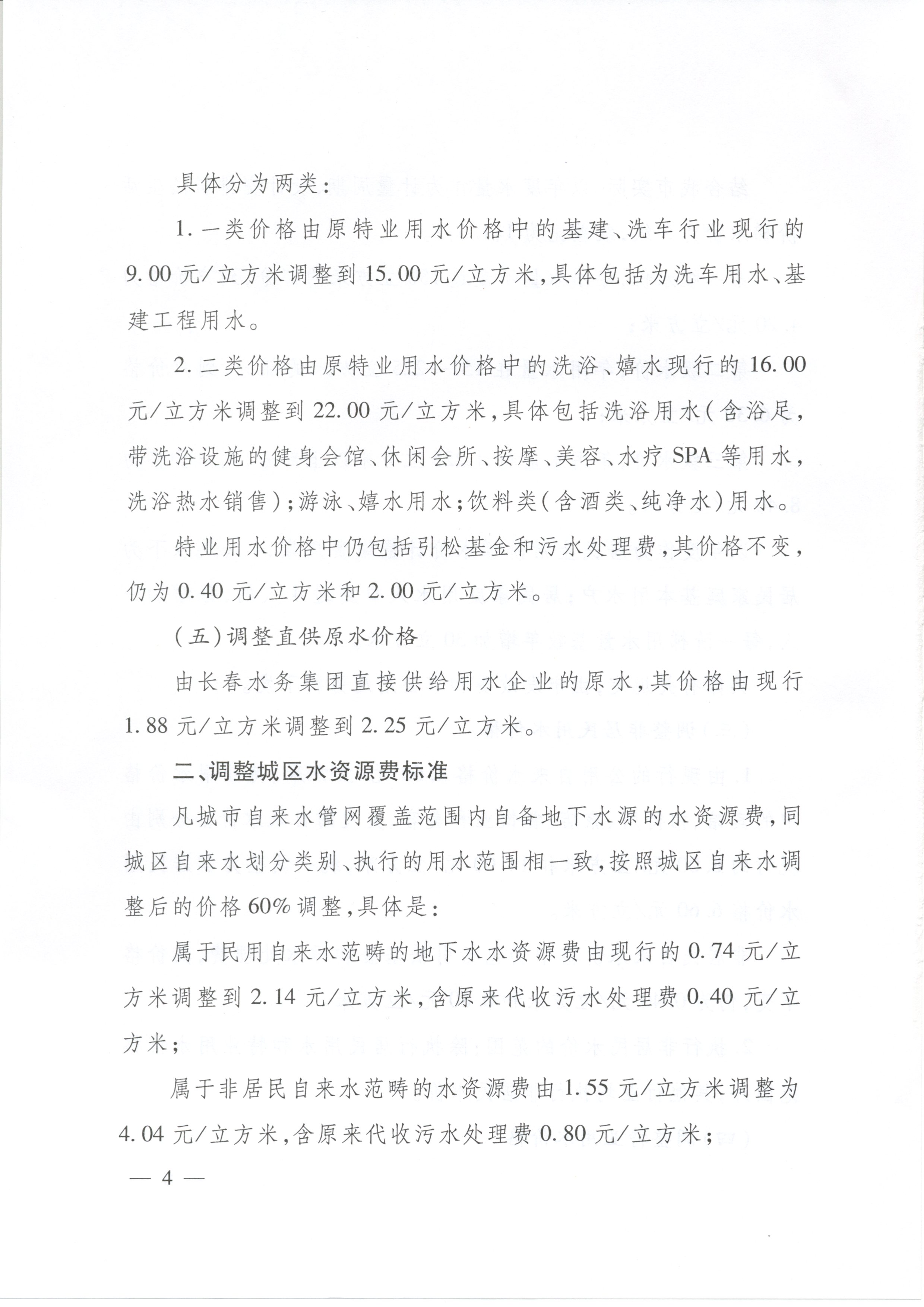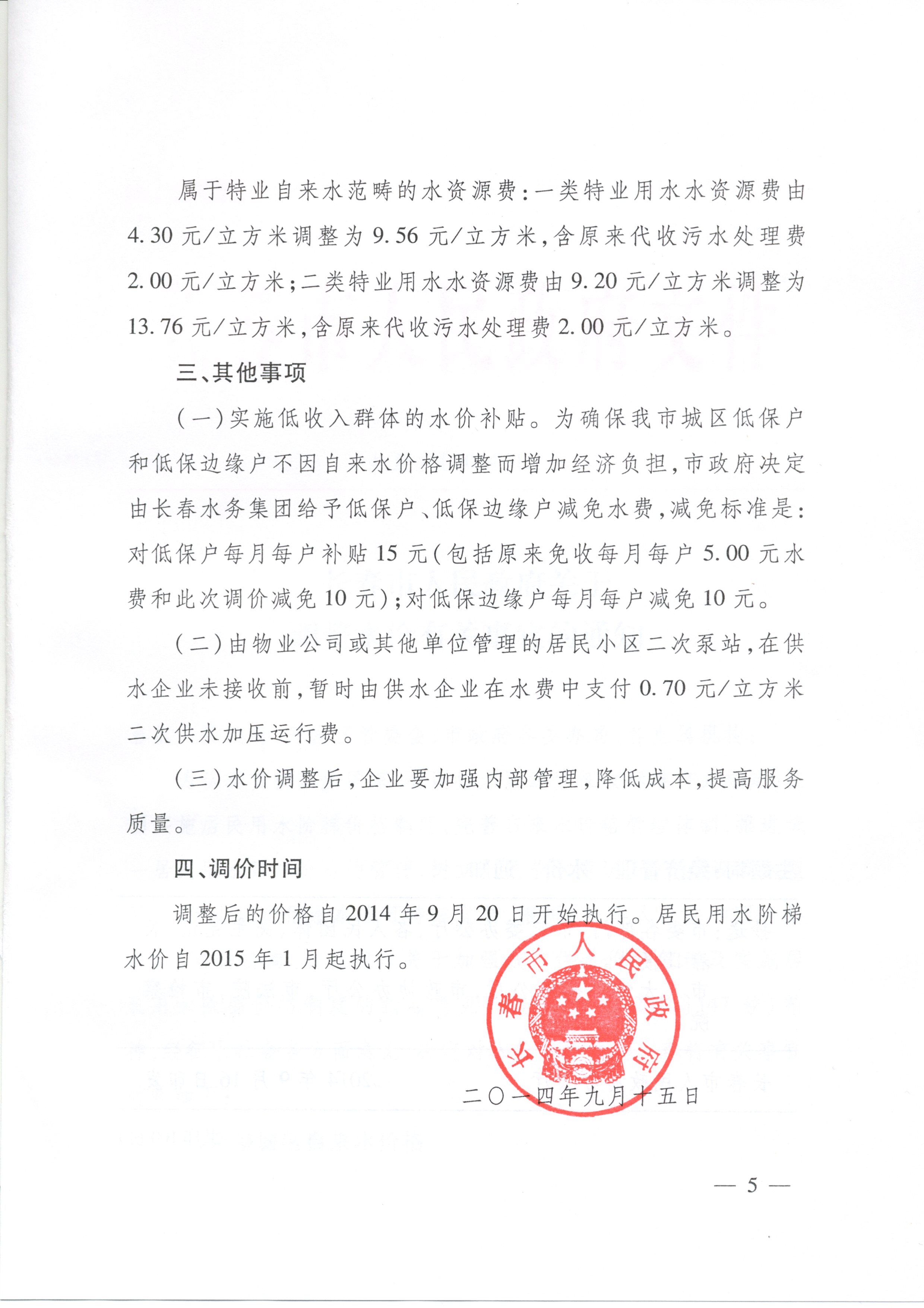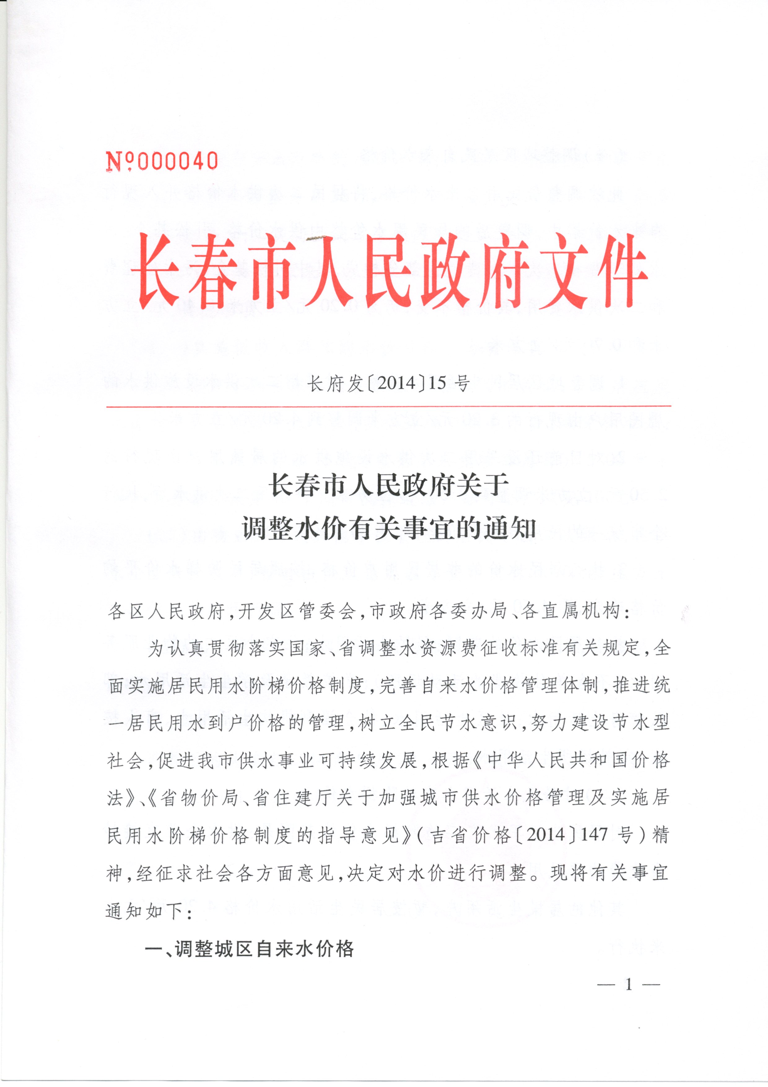 长春市人民政府关于调整水价有关事宜的通知(长府发【2014】15号)
