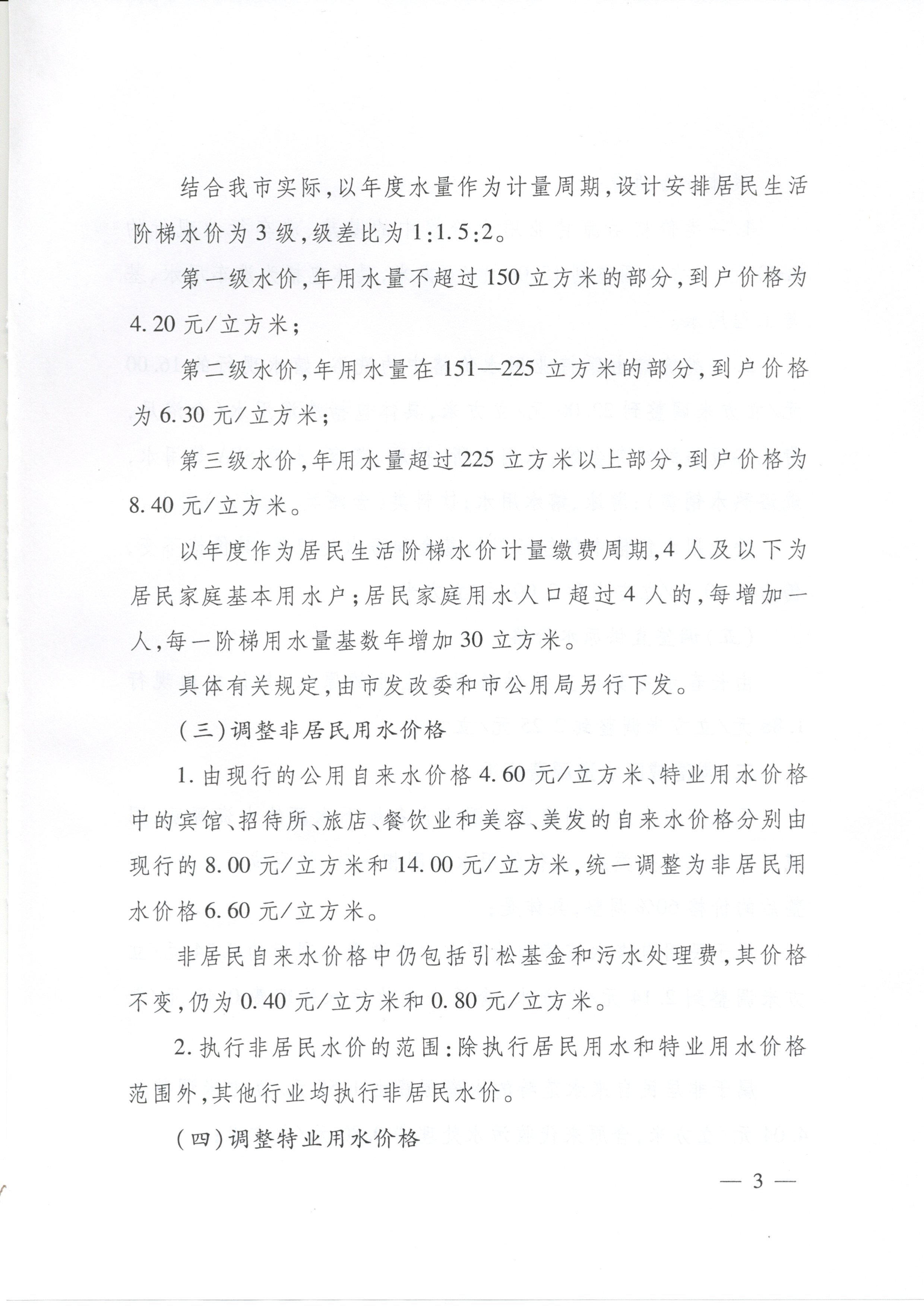 关于实施居民家庭生活用水价格有关事宜的通知(长发改价格联【2014】195号)