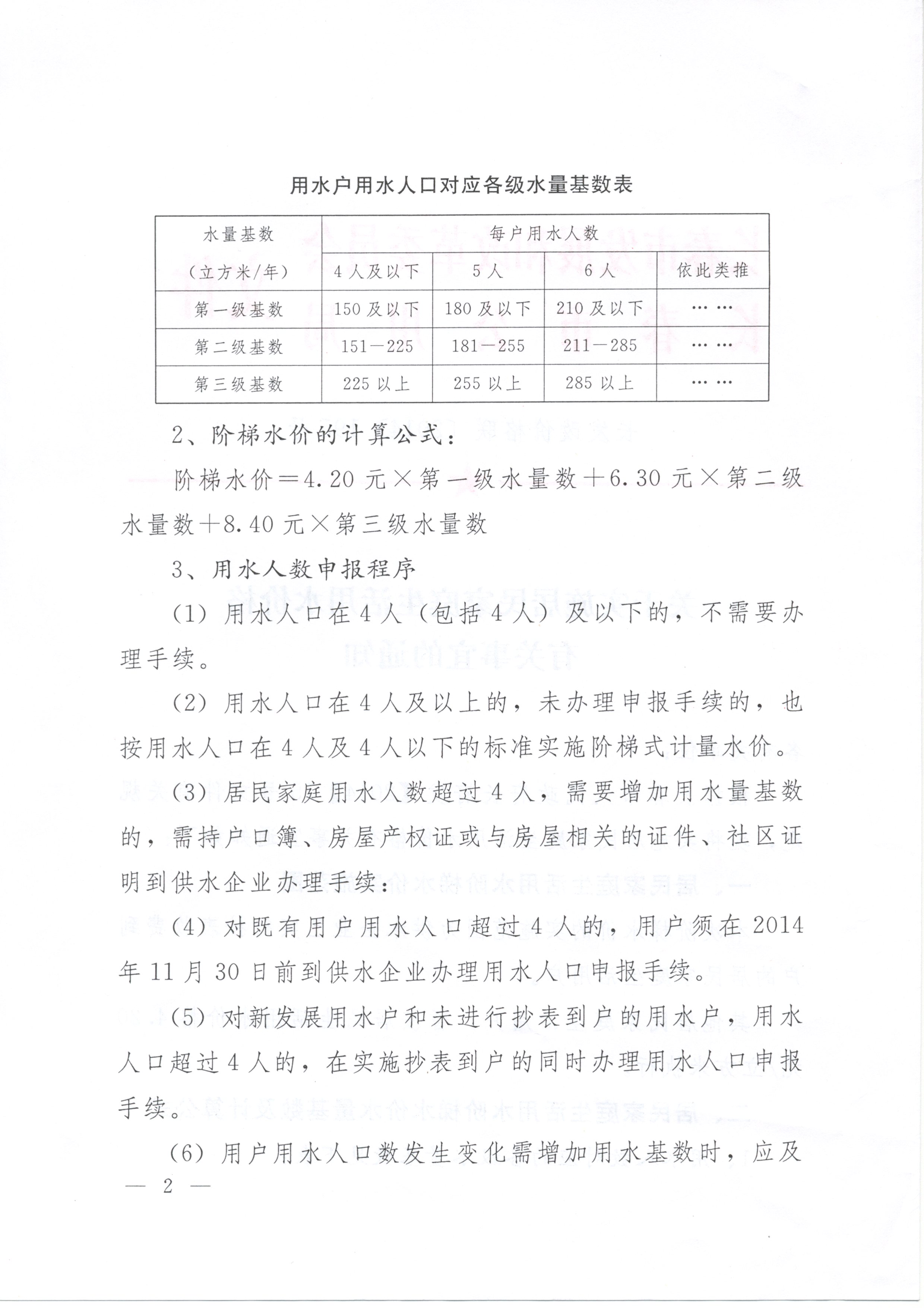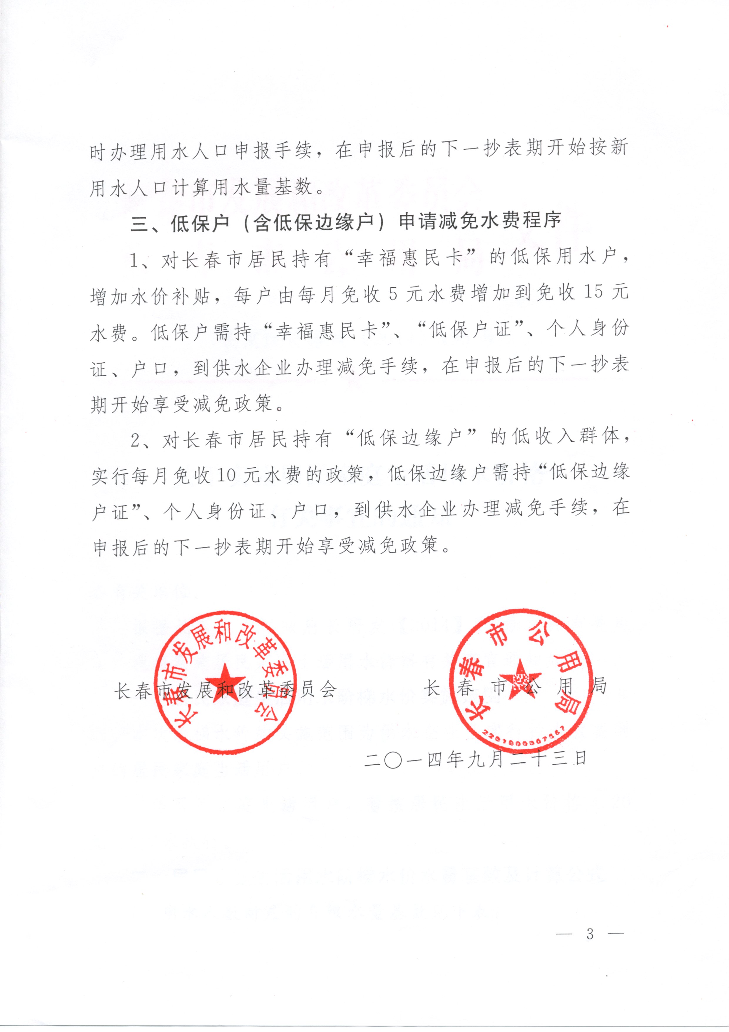 关于实施居民家庭生活用水价格有关事宜的通知(长发改价格联【2014】195号)