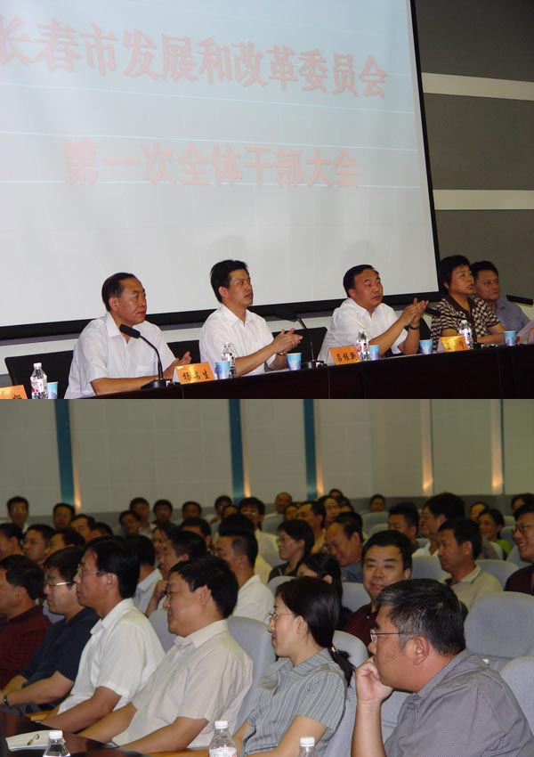 31日,长春市发展和改革委员会第一次全体干部大会召开,大会由市政府副秘书长吕桂新同志主持。市发改委主任王宁同志宣布委党组任职及分工并做了重要讲话,杨瑞生副主任宣布发改委、价格监督检查局三定方案主要内容,黄凤云副主任宣布了中层干部任职决定,并由林姗副主任传达了崔杰副市长在发改委班子会议上的讲话要点。