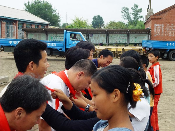 我委向十里堡小学举行了桌椅捐赠活动